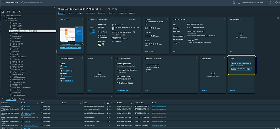 There's our VM with the Tags we specified at request time! Tags can be used for all sorts of use cases, hope this was helpful!