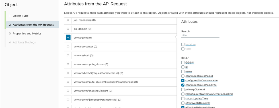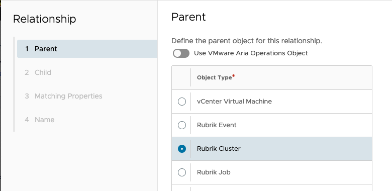 This allows us to attach Rubrik metrics and properties to vSphere VMs. We could create Rubrik VM Object Types and relate them to vSphere VMs later, but this is much cleaner.