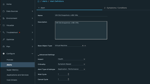 I will use this Alert Definition later in my Notification for VMs containing "vr83". Next let's create another Alert Definition for our other group of VMs.