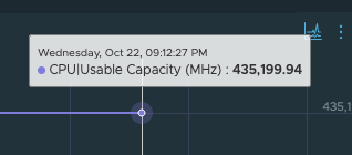 So, CPU Workload % is CPU Demand / Usable Capacity. For my Cluster that looks like this.